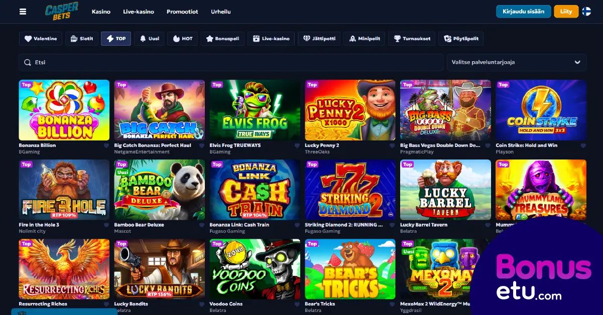 Tommi ja muu Bonusedun tiimi pitävät Casper Bets Casinoa monipuolisena pelipaikkana, mikäli verolliset voitot, korkea kierrätysvaatimus tai englanninkielinen asiakaspalvelu eivät haittaa pelikokemusta. Alta löydät vertailussa muutaman tiimimme suosikkikasinon.
