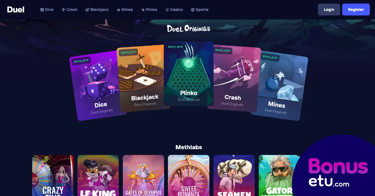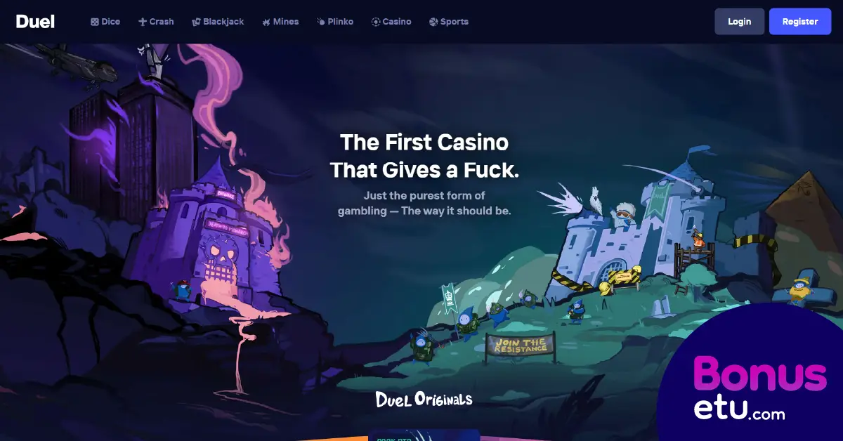 Duel Casino on mielenkiintoinen kryptokasino. Sen hyviin ominaisuuksiin kuuluvat muun muassa nopeat voitonmaksut, iso pelikattaus sisältäen myös provably fair -pelejä 0 % talon edulla ja päivittäinen rakeback.