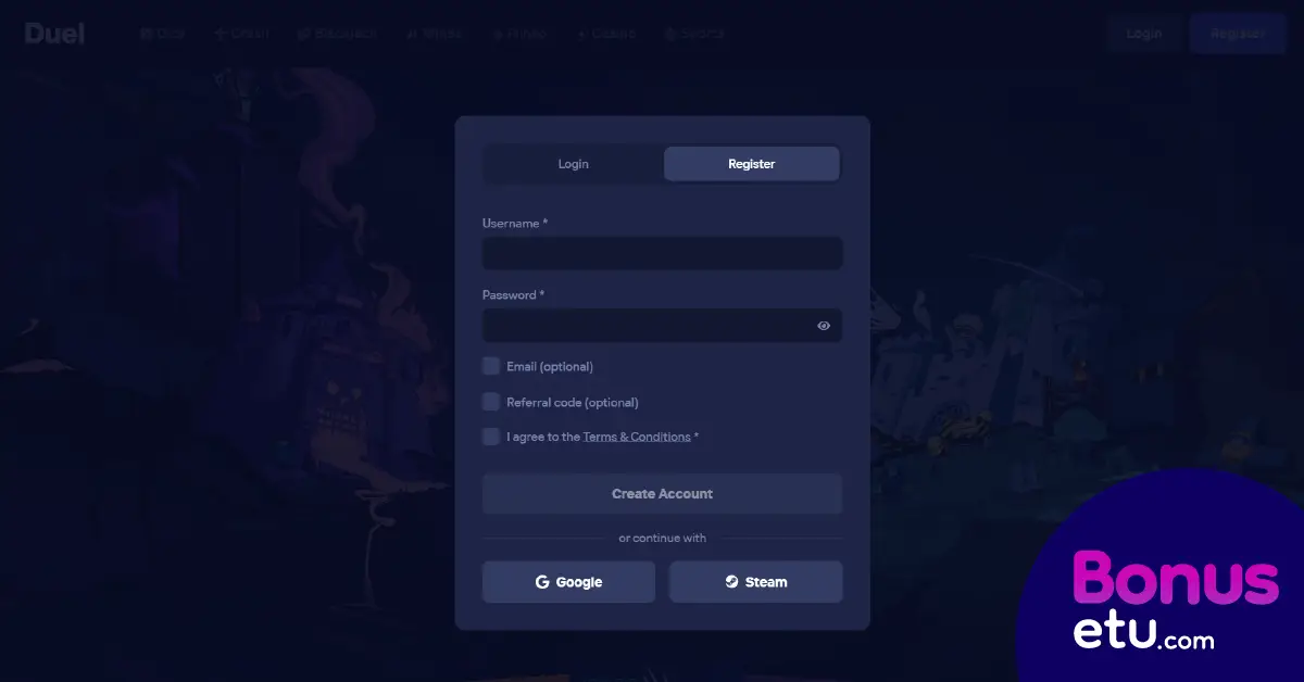 Duel Casinolla pelitilin avaaminen on nopea prosessi, eikä sinun tarvitse kuluttaa aikaa pitkän lomakkeen täyttöön.