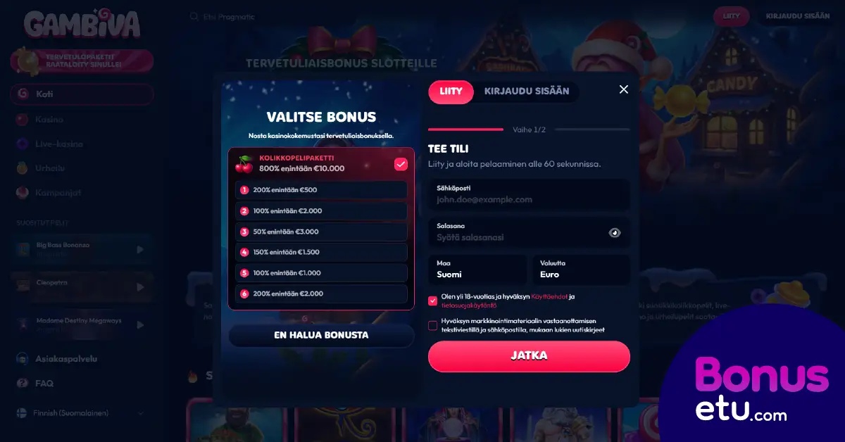 Gambiva.com kirjautuminen & pelitilin avaaminen