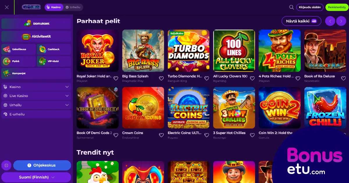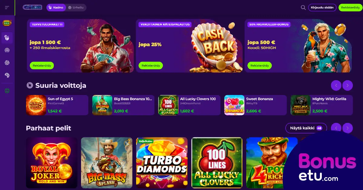 - Hurja määrä kasino- ja vedonlyöntibonuksia sekä palkitseva kanta-asiakasohjelma.