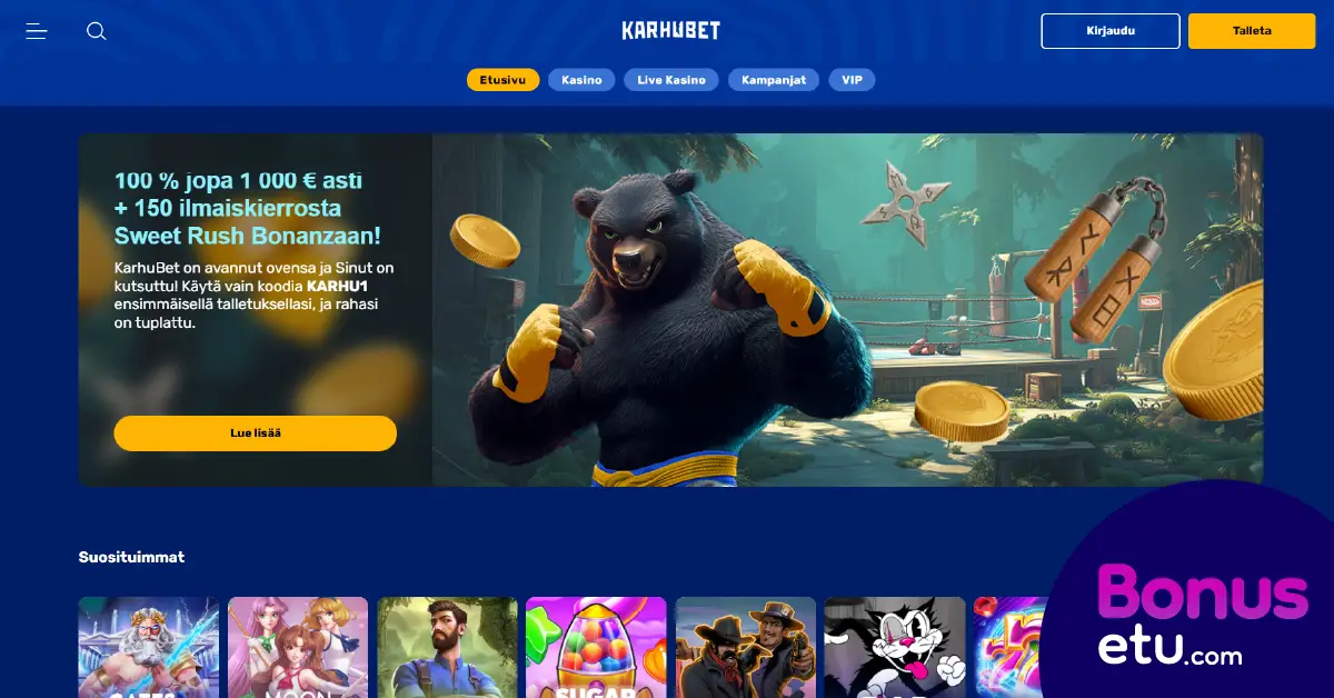 - Käytä bonuskoodia: KARHU1