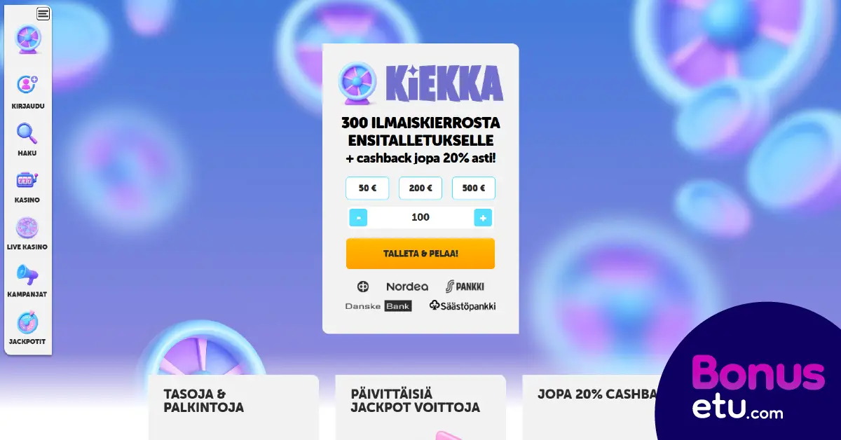 300 ilmaiskierrosta + 20% PÄIVITTÄINEN cashback!