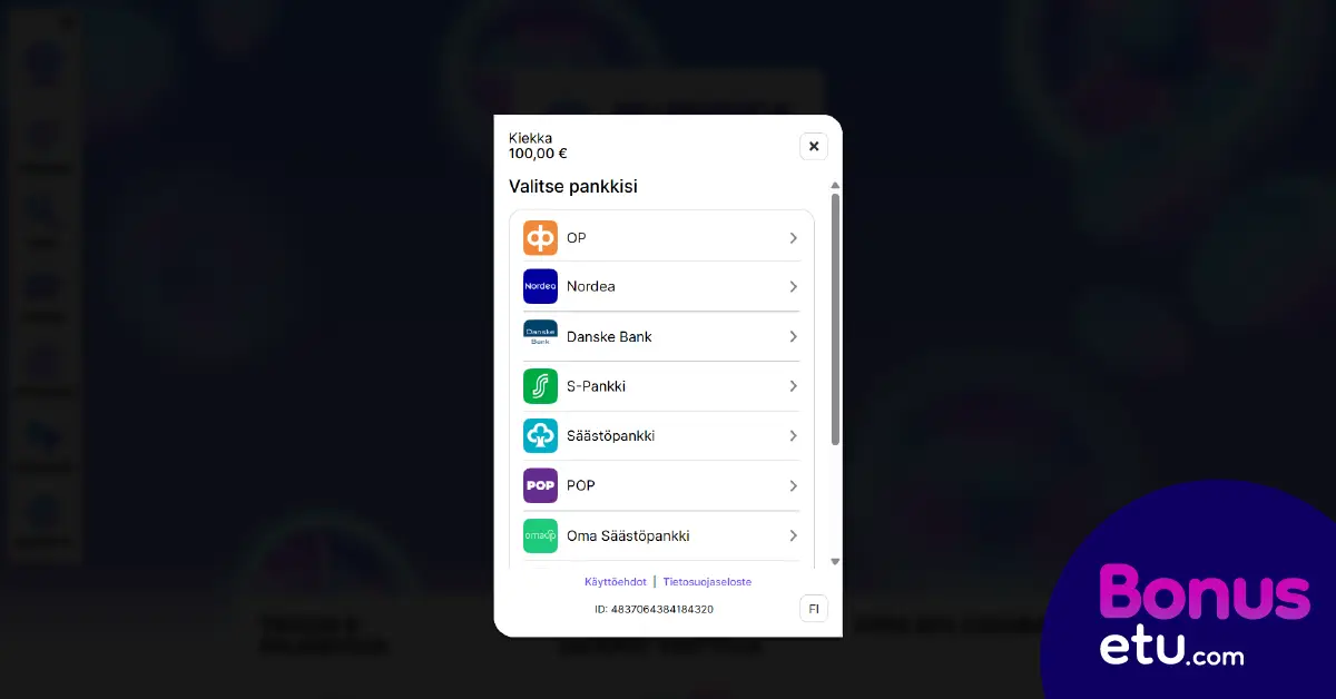 Vahvistettuasi maksun, talletus siirtyy pelitilillesi välittömästi.