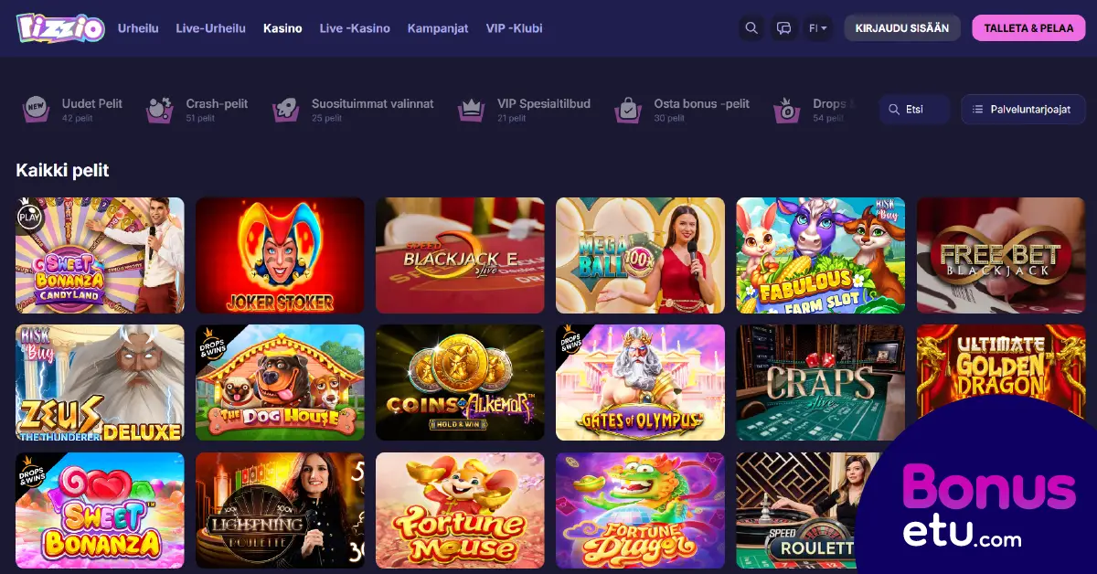 Rizzio Casinon live casino on erinomainen, koska se sisältää yli 1 000 livepeliä alan tunnetuimmilta pelivalmistajilta, kuten Evolution ja Pragmatic. Perinteisten pöytäpelien lisäksi livekasino tarjoaa myös suosittuja game show -pelejä, kuten esimerkiksi Monopoly Live, Sweet Bonanza Candyland ja Crazy Time.