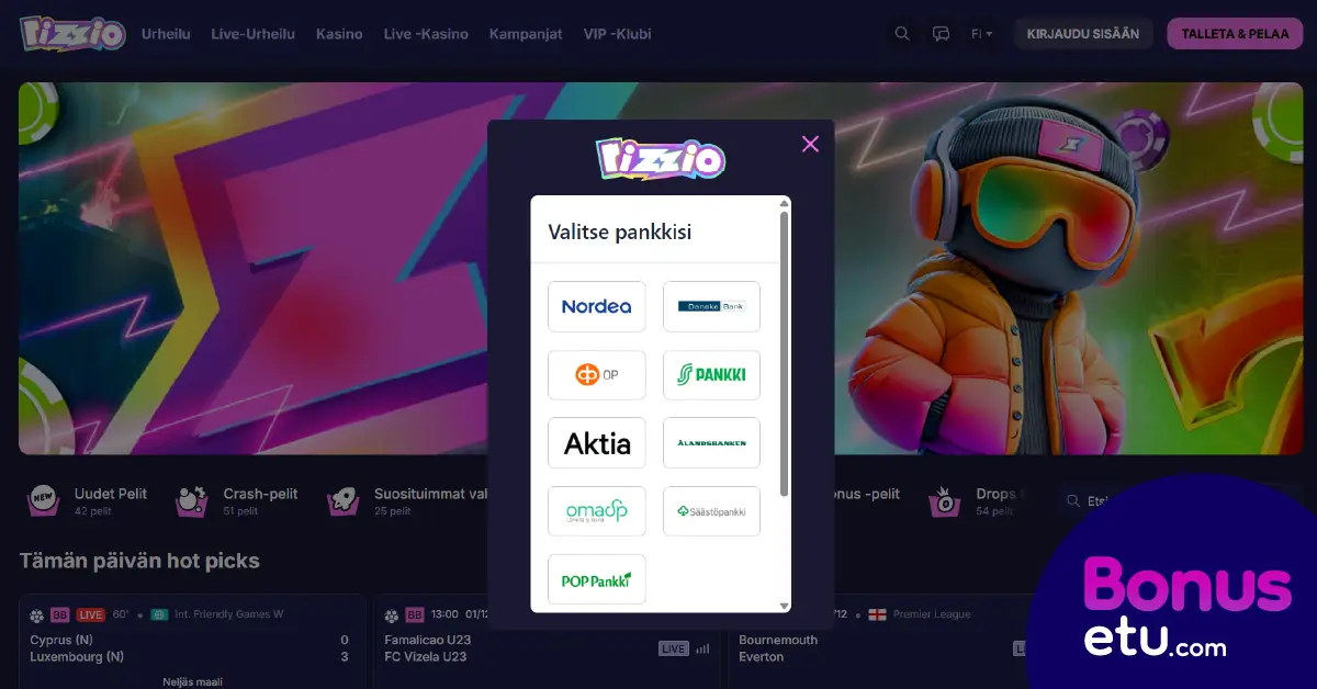 Tervetuliaisbonus on tarjolla 25 € minimitalletuksella ja se valitaan pudotusvalikosta talletuksen yhteydessä.
