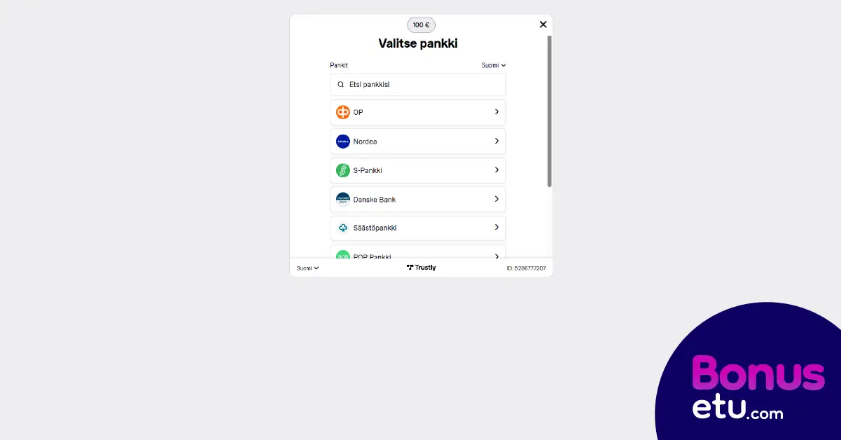 Vahvista talletus omilla pankkitunnuksilla.